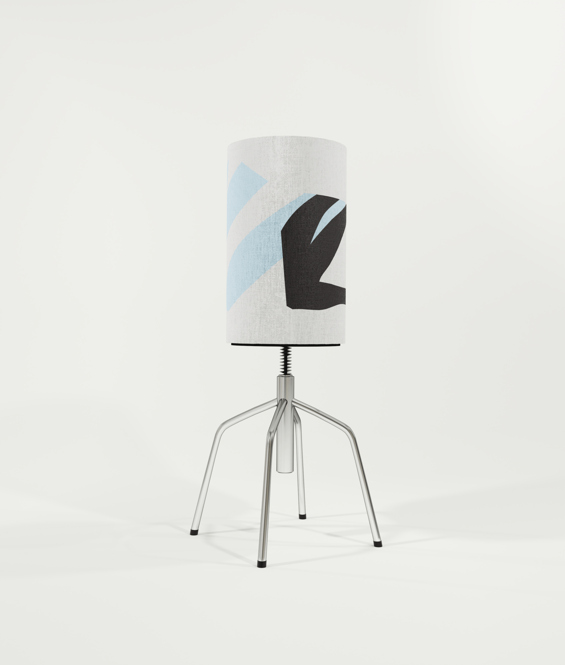 metal with chrome finish, wood, fabric, cable, hight ca. 88 (max.)/ 73 (min.) x 42 x 42 cm (entire lamp), 40 x 20 cm (lampshade only)