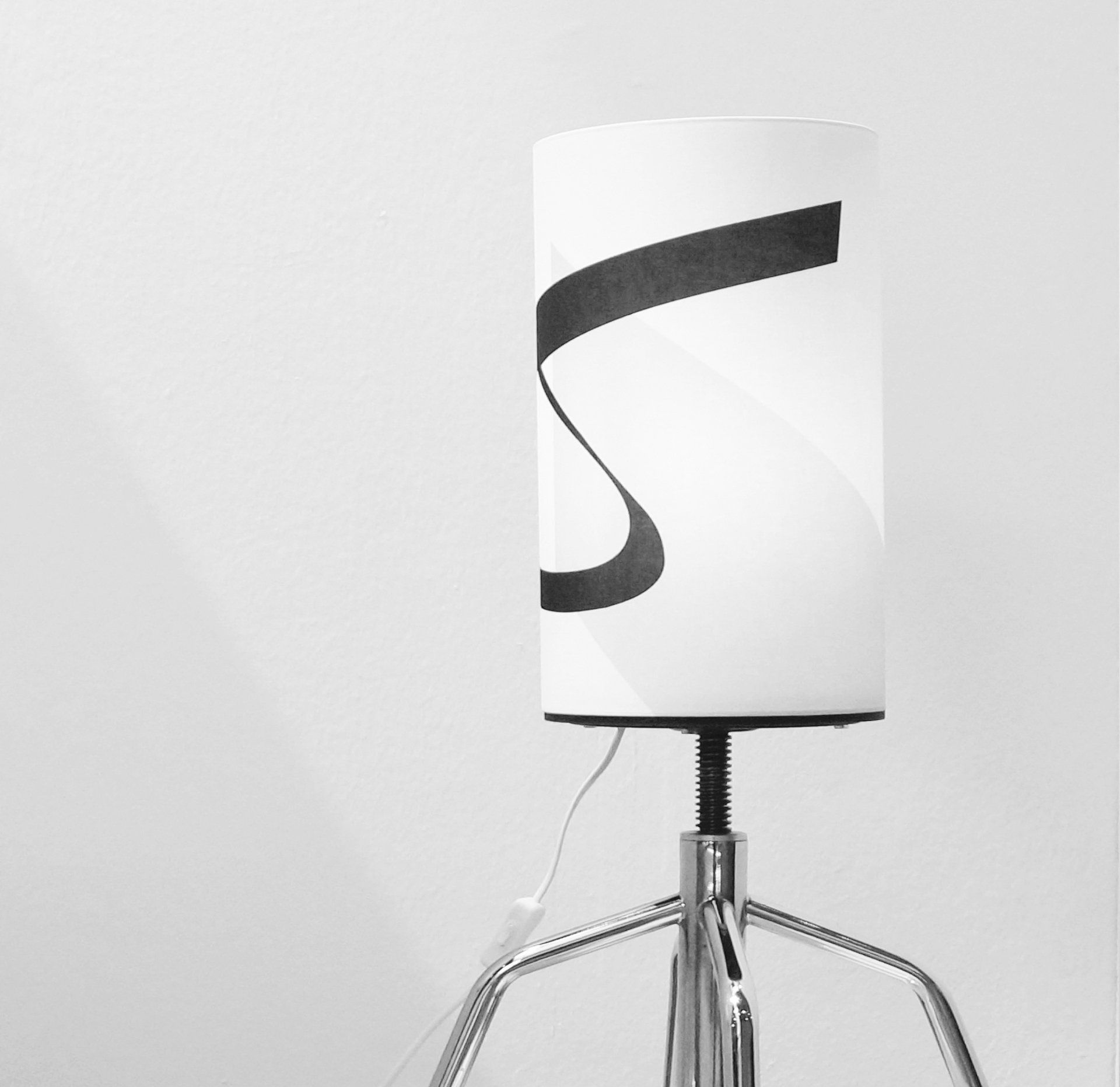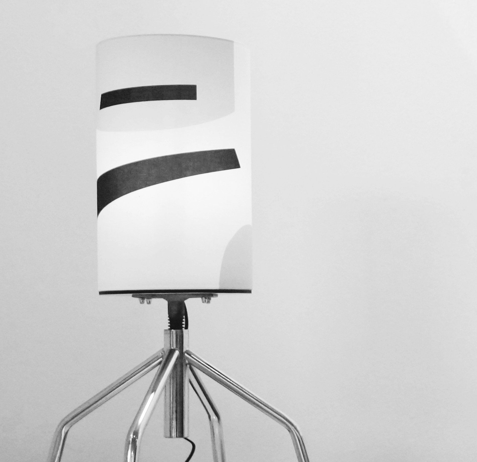 metal with chrome finish, wood, fabric, cable, hight ca. 88 (max.)/ 73 (min.) x 42 x 42 cm (entire lamp), 40 x 20 cm (lampshade only)
